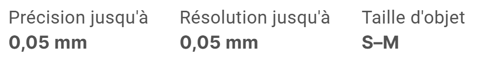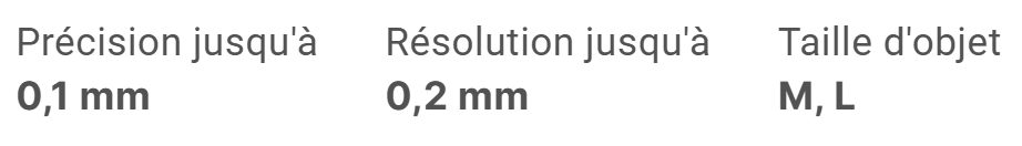 Scanner 3D de bureau de qualité métrologique ultra-rapide, d'une précision de 5 microns, pour la capture de mesures d'objets de très petite taille ou de petite taille aux surfaces complexes et compliquées. Idéal pour le contrôle qualité, la rétro-ingénierie, la criminalistique, l'archéologie, la bijouterie, la dentisterie et le design.